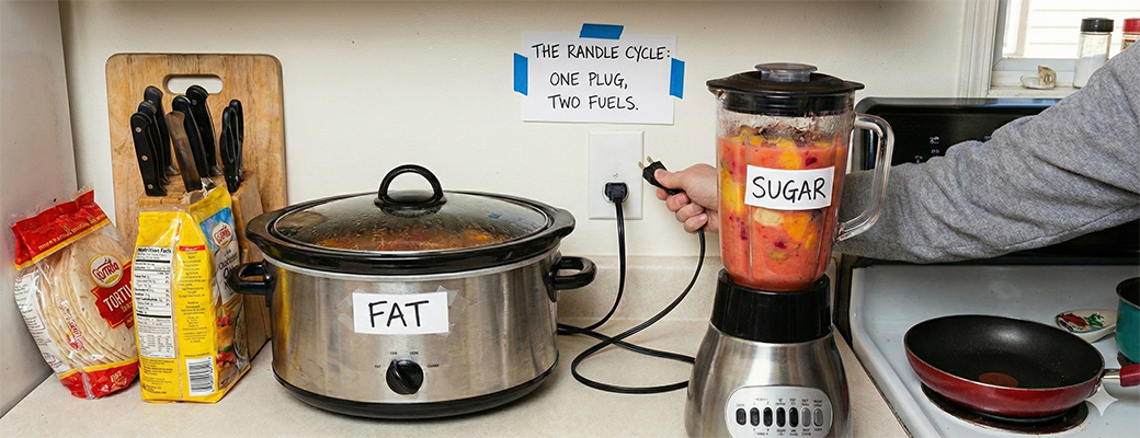 But here is the science made simple: Your body has something called the Randle Cycle. Think of it as a metabolic traffic cop. This mechanism is how your hormones and mitochondria deal with the huge mess left behind when fats and carbs compete to get into your cells at the same time.